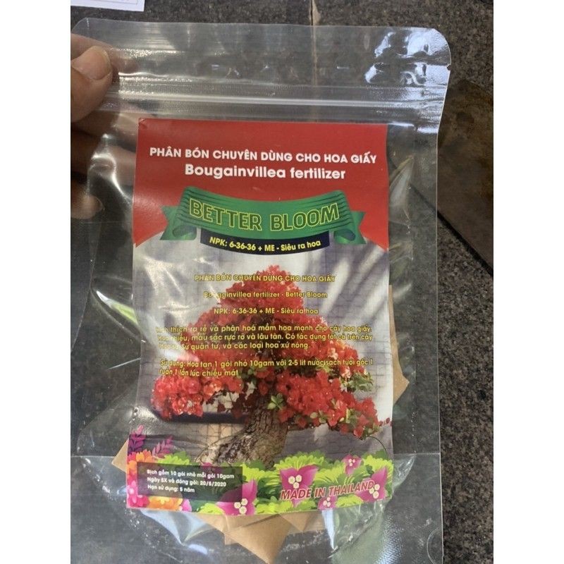 Phân bón chuyên dùng cho hoa giấy hàng Thái lan chuẩn+ Bịch gồm 10 gói nhỏ mỗi gói 10gr