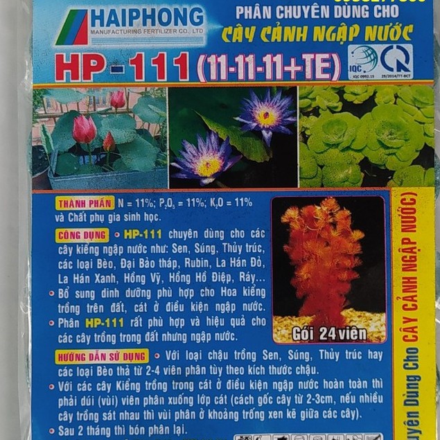 - Phân bón cho cây ngập nước HP-111 chuyên dùng cho cây cảnh ngập nước như: hoa Sen, Súng, Thủy trúc, Bách thủy tiên, các loại bèo, Đại bảo tháp, Rubin, La hán đỏ, La hán xanh, Hồng vỹ, Hồng Hồng hồ điệp, Ráy,…