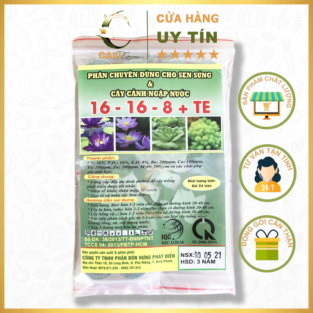Phân bón 16-16-8 cho sen súng cung cấp hàm lượng NPK và các nguyên tố khoáng cho các loại cây thủy sinh như: sen, súng, lan hán đỏ, la hán xanh, bách thủy tiên,.... giúp các loại cây thủy sinh có khả năng phát triển, sinh trưởng mạnh mẽ và cho hoa đẹp.🌼 Khối lượng: 24 viên/ gói