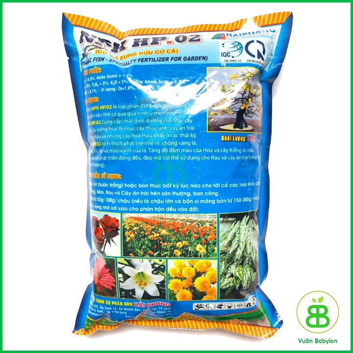 Phân NPK HP.02 là loại phân đặc biệt có bổ sung nguồn nguyên liệu thịt cá qua quá trình ủ men vi sinh. Cung cấp dinh dưỡng cho cây hoa kiểng, bonsai, cây thuỷ sinh, cây an trái, cây hoa màu ở các thời kỳ.