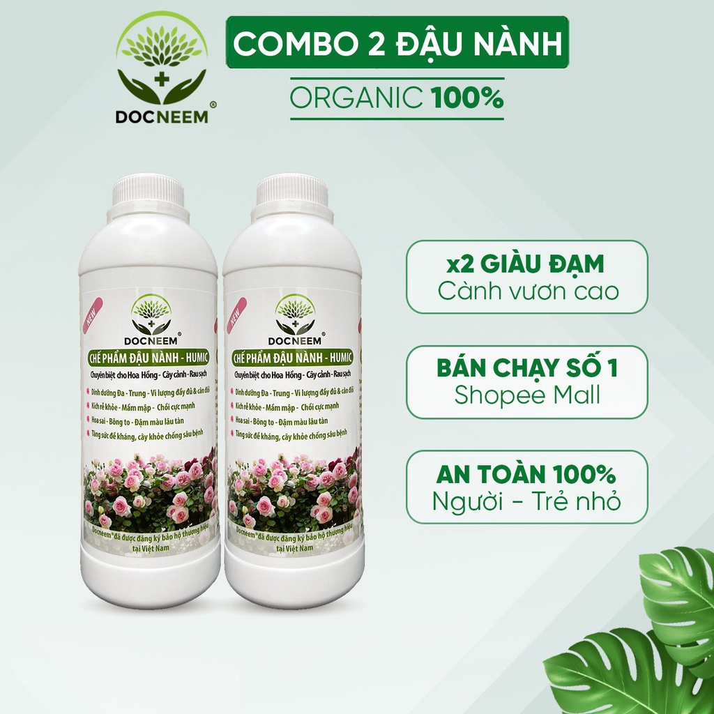 Phân bón đậu nành humic DOCNEEM hữu cơ, lên men, chuyên cho hoa hồng, phong lan 2 chai 1 lít