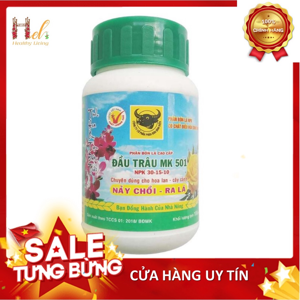 Phân bón đầu trâu 501 phân bón lá phun trực tiếp vào lá và thân cây cung cấp cho cây trồng đạm, khoáng chất giúp hoa lan cây cảnh đâm chồi, nảy lộc nhanh và dễ dàng ra lá. Đâu là một dạng phân NPK tổng hợp cứ trong 100gr có 30gr N, 15gr lân và 10gr kali. Với hàm lượng đạm cao giúp cây trồng ra nhiều lá và quả hơn.