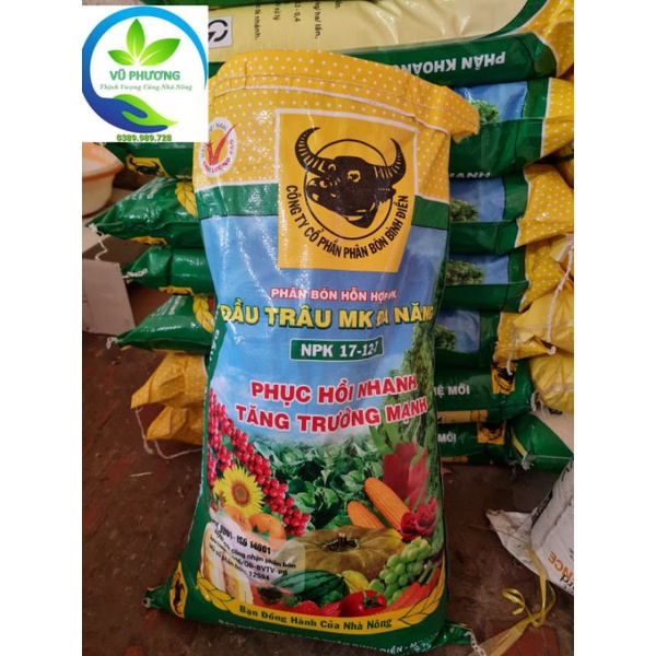 Giới thiệu Phân bón đầu trâu MK đa năng 17-12-7 , Phục hồi nhanh, Tăng trưởng mạnh dùng cho hoa, cây cảnh, rau gói 1kg
