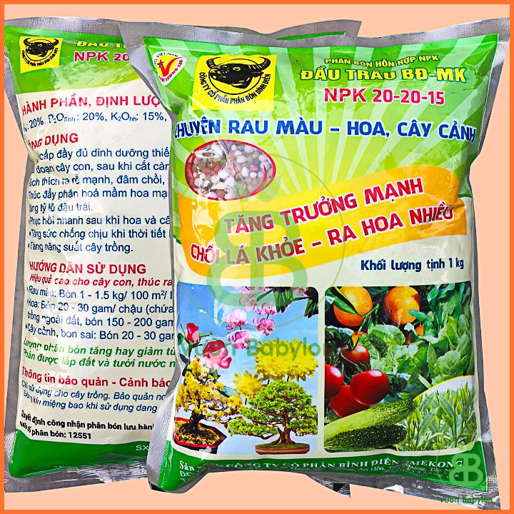 Phân Bón Đầu Trâu NPK 20-20-15Phân bón Đầu Trâu NPK là loại phân khoáng đa dinh dưỡng thế hệ mới; chuyên dùng cho hoa và các loại cây cảnh.