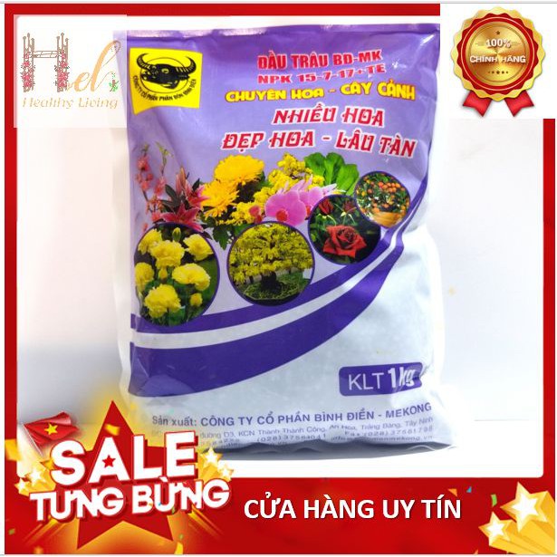 Nhà cửa & Đời sống > Làm vườn > Phân bón || Phân bón Đầu Trâu NPK chuyên cho hoa, cây cảnh 15-7-17+TE Trồng Rau Sạch Bằng Đất Sạch, Xơ DừaCòn hàng