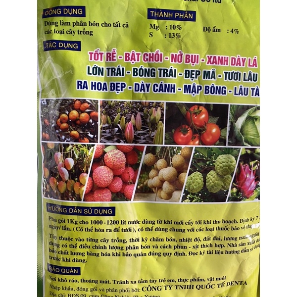 - Pha 1 gói 1kg cho 1000-1.200 lít nước dùng tưới hoặc phun định kỳ 7-10 ngày 1 lần.