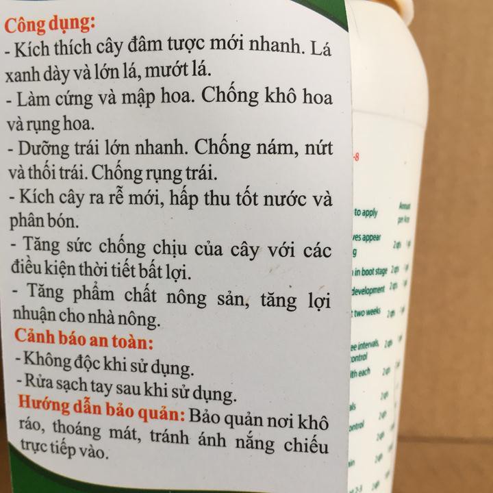 Pha 10-15ml cho bình 12 lít nước dùng cho mọi thời kì của cây định kì 5-7 ngày trên lần.