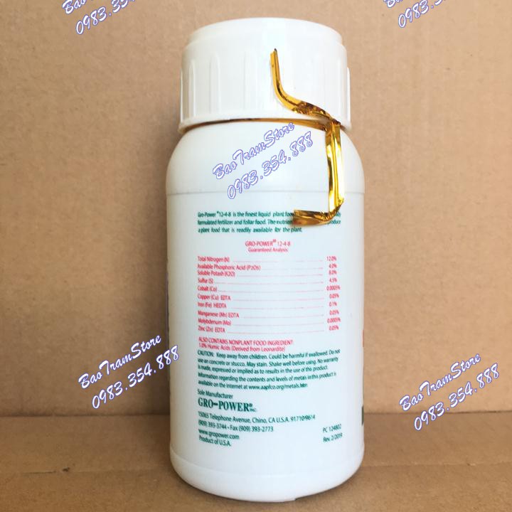 Phân bón GROW POWER 12-4-8 chai 240ml nhập khẩu nguyên chai từ Mỹ.