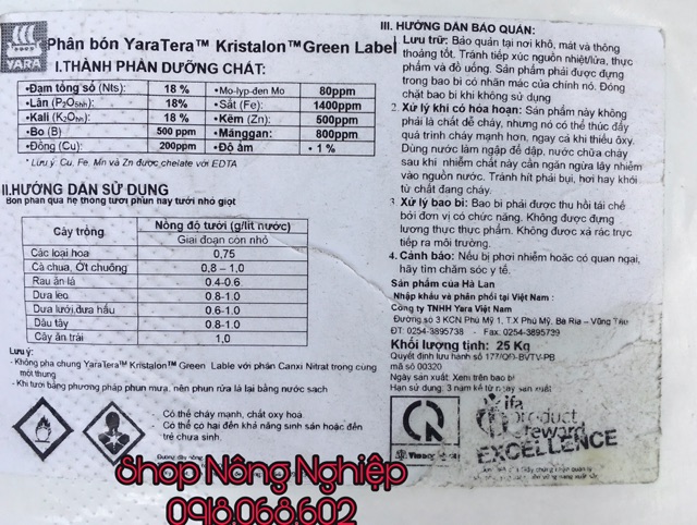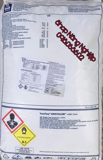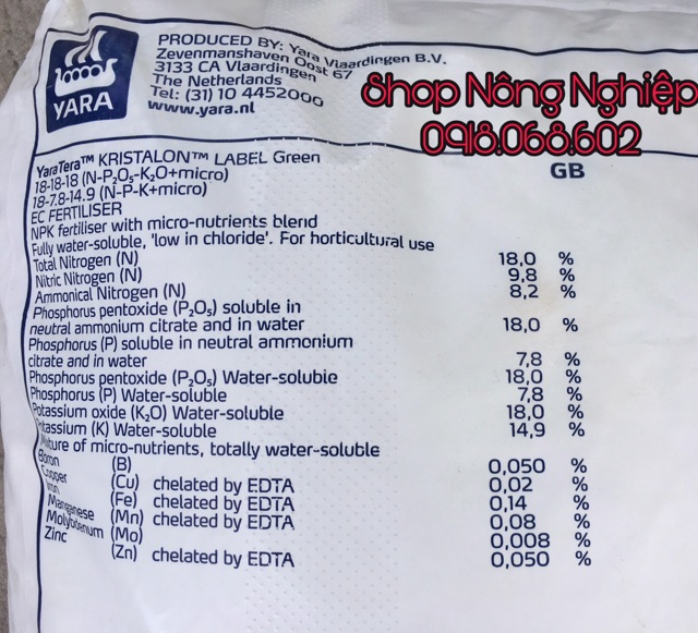 Yara Tera Kristalon Label 18-18-18+Micro🍎🥦🥬Phân bón Yara Tera Kristalon Label nhập khẩu chuyên dùng để phun, tưới nhỏ giọt và trồng thuỷ canh.