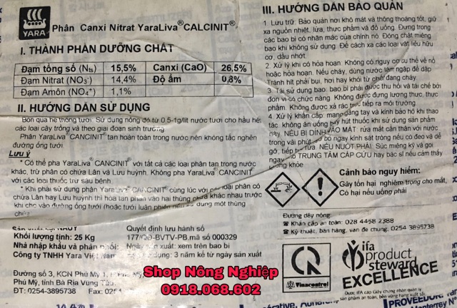 👉Công dụng: cung cấp lượng đạm và canxi cần thiết cho cây trong quá trình sinh trưởng và phát triển giúp: