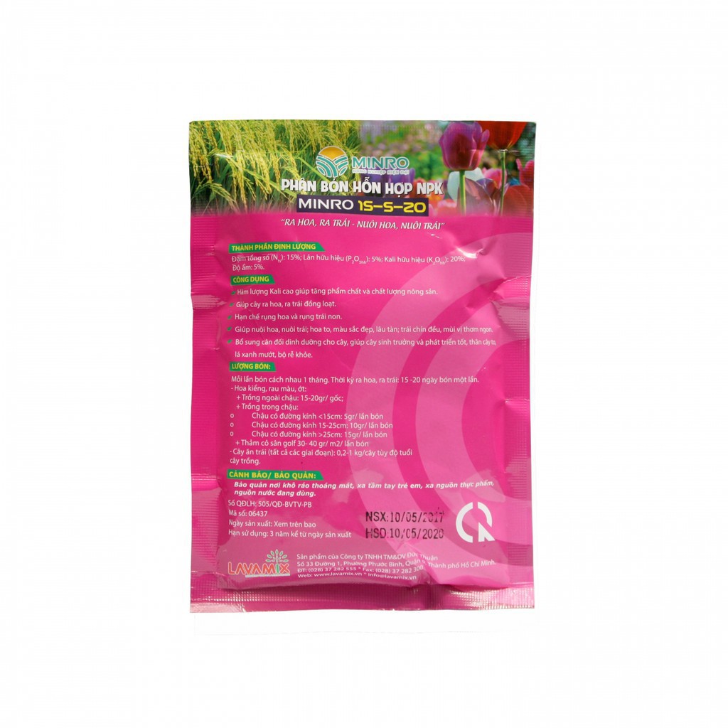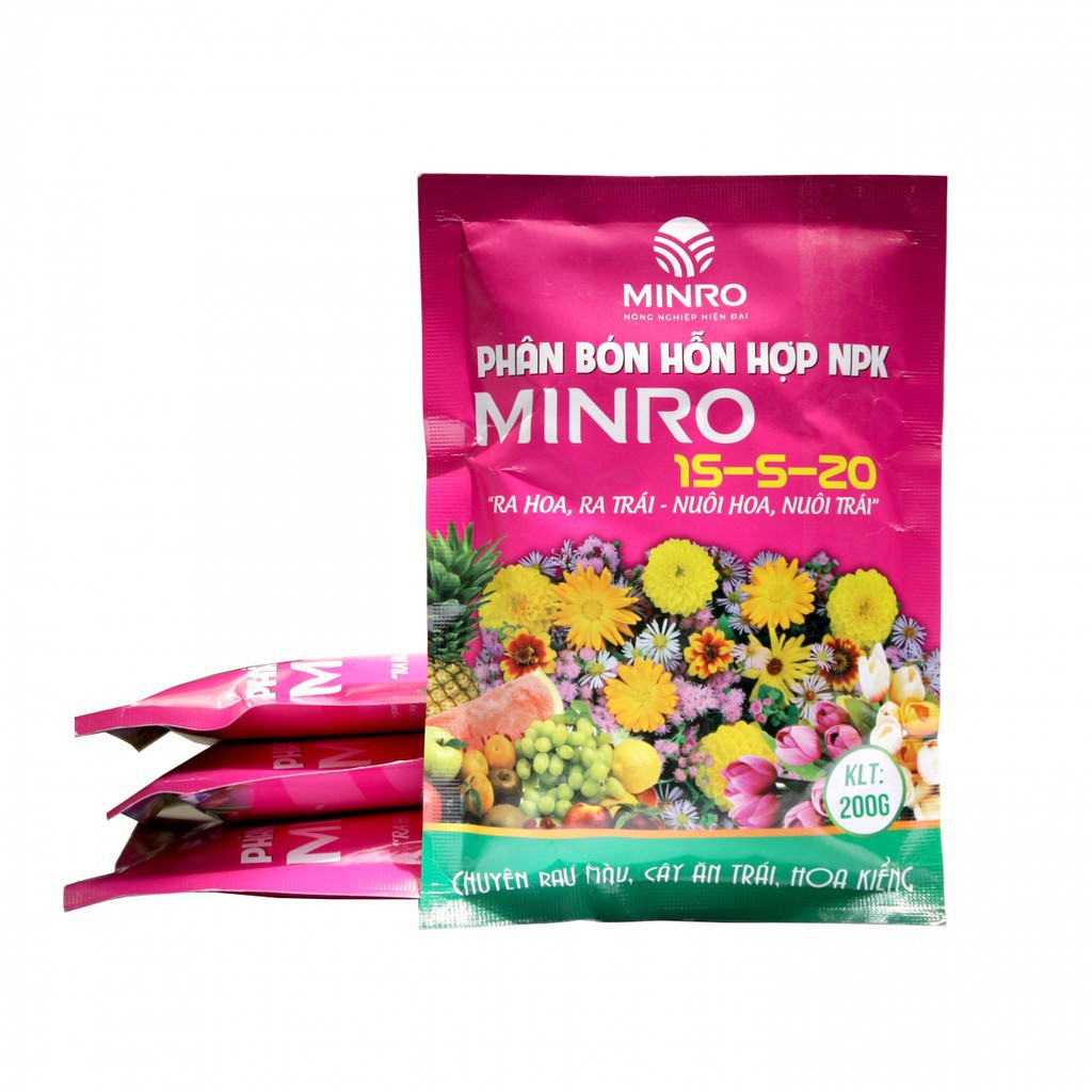 Giới thiệu Phân Bón Hỗn Hợp NPK 15-5-20 MINRO Giúp RA HOA, RA TRÁI - NUÔI HOA, NUÔI TRÁI (200Gram)