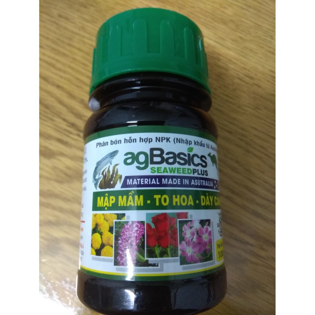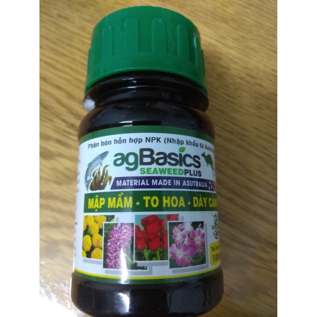 PHÂN BÓN HỮU CƠ AGBASICS - SEAWEED PLUS - CHAI 100 MLMẬP MẦM - TO HOA - DÀY CÁNH