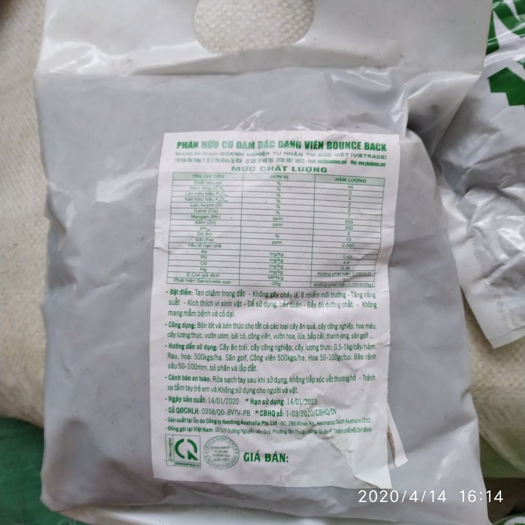 Nhà cửa & Đời sống > Làm vườn > Phân bón || Phân bón hữu cơ đậm đặc dạng viên của Úc Bounce Back có bổ sung vi lượngCòn hàng