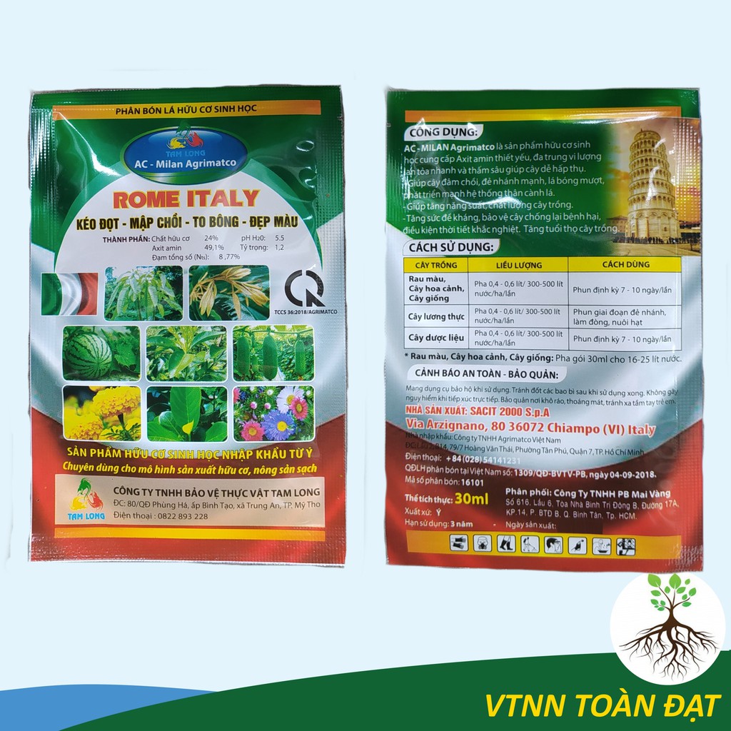 Phân Bón Hữu Cơ Sinh Học Siêu Bung Chèo Ra Đọt, Dưỡng HoaROME ITALY