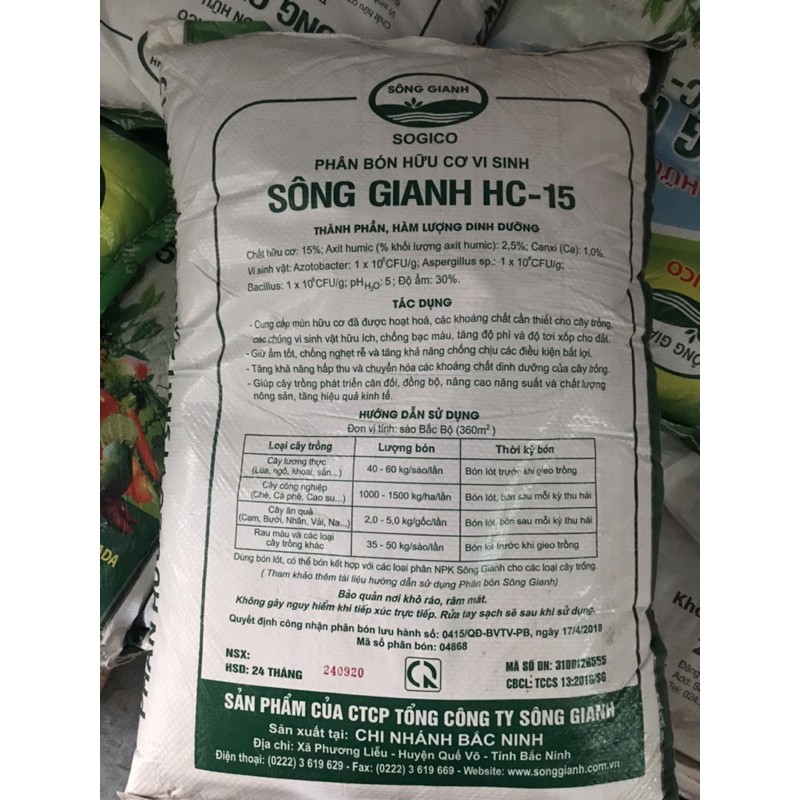 Nhà cửa & Đời sống > Làm vườn > Phân bón || Phân bón hữu cơ vi sinh Sông Gianh (bao 10kg)Còn hàng