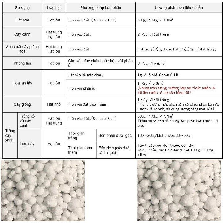 🌹 Hoa hồng: trồng chậu (trộn vào đất): 30g/24cm; trồng vườn (trộn vào đất): 50g/1 gốc