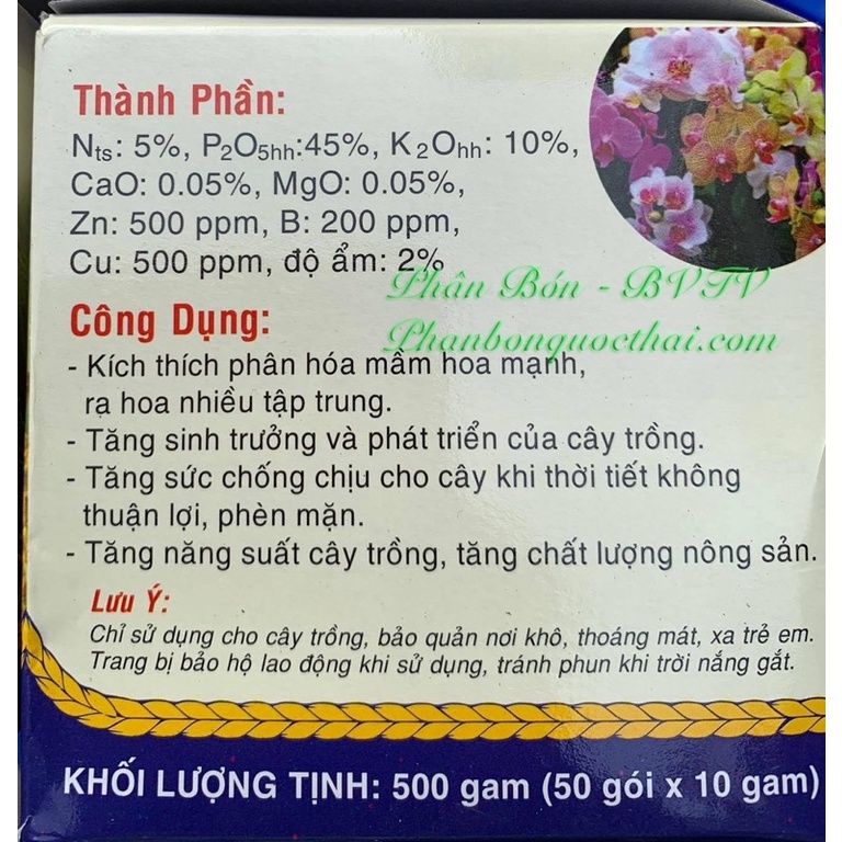 Giới thiệu Phân bón Kích Hoa , Đậu nhiều trái , Đầu Trâu 5-45-10 ( Ra nhiều hoa ), Gói 10gr