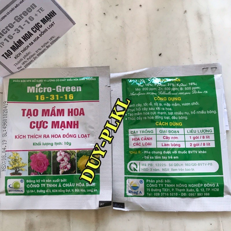 Nhà cửa & Đời sống > Làm vườn > Phân bón || PHÂN BÓN KÍCH RA HOA CỰC MẠNH : NPK 16-31-16 MICRO- GREEN GÓI 10gr.Còn hàng