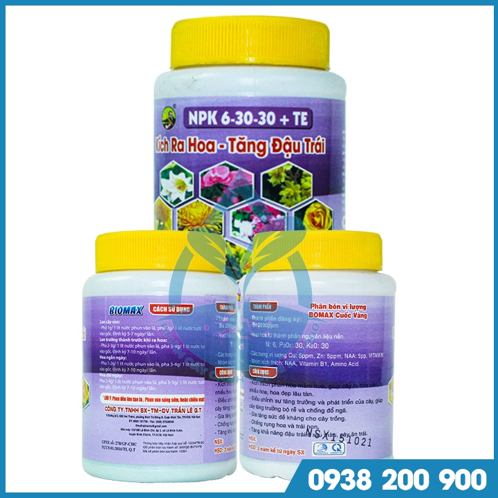 Giới thiệu Phân bón kích ra hoa NPK 6-30-30 +TE - kích ra hoa, tăng đậu trái trên cây kiểng, cây ăn trái - bomax chai 100 gram