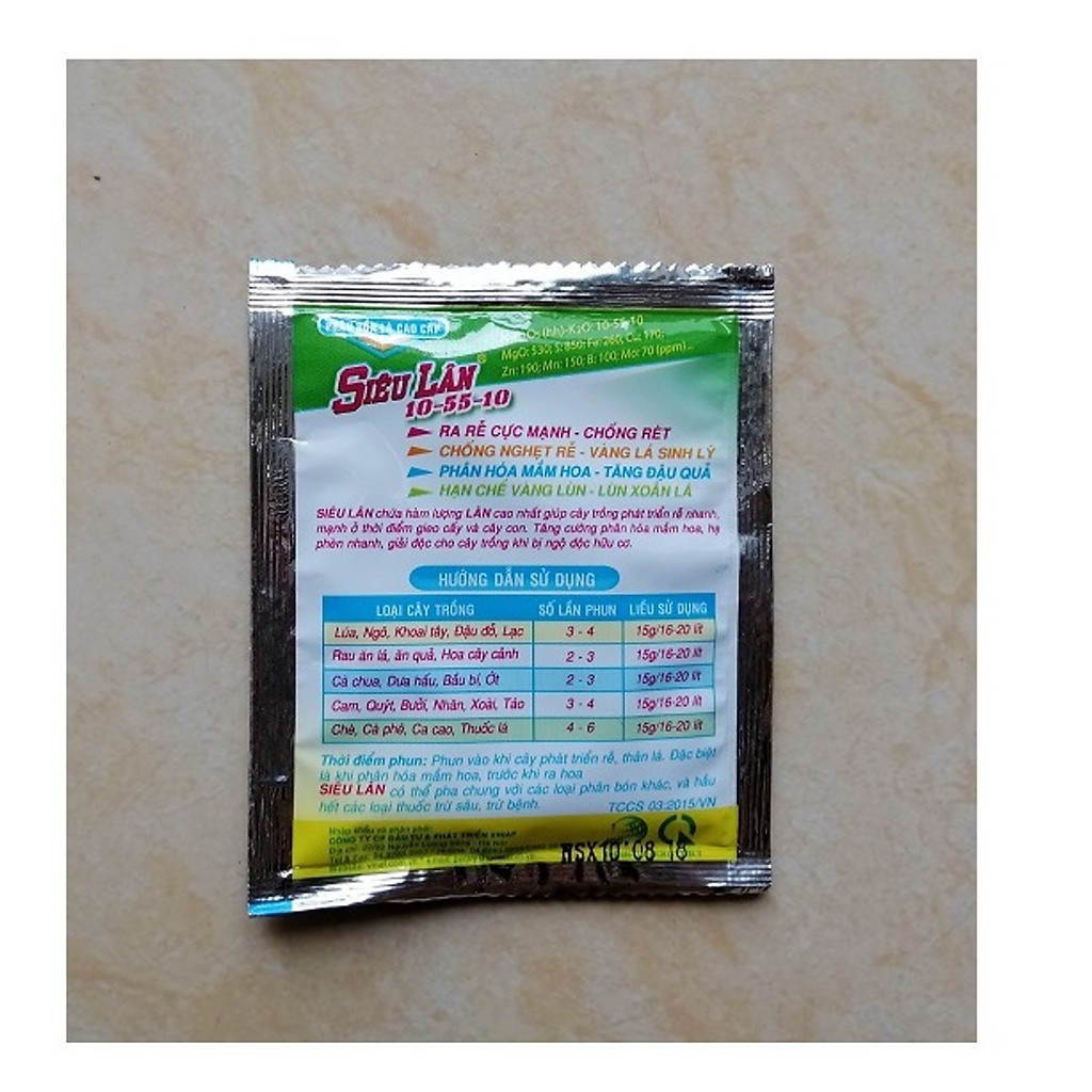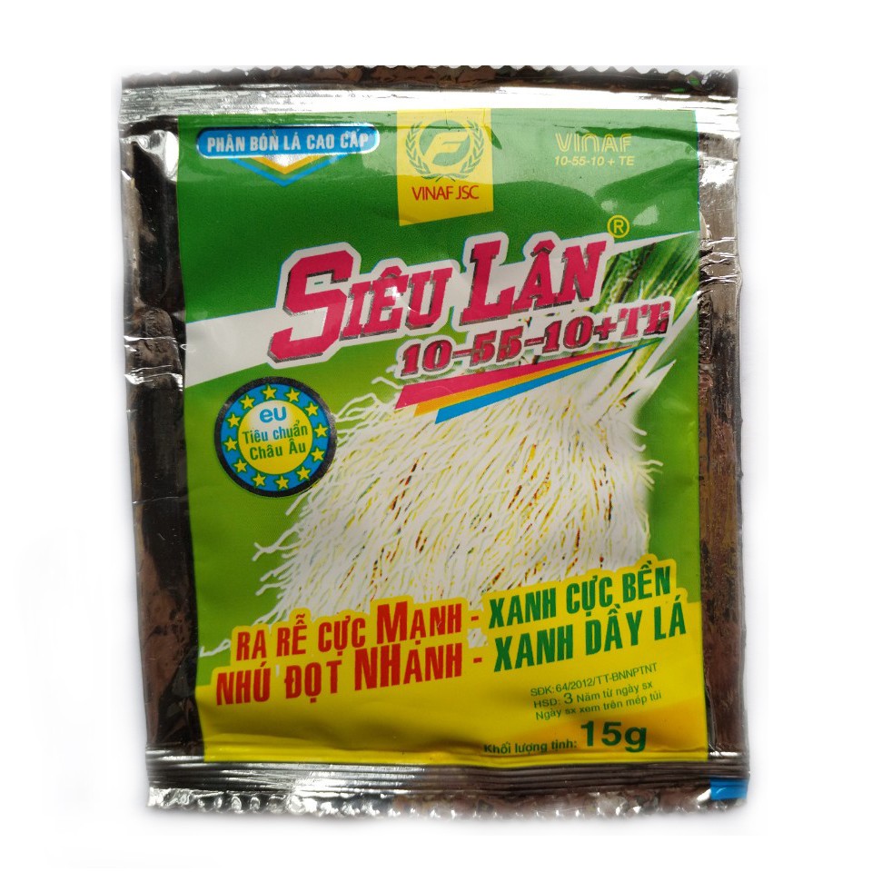 Phân bón cao cấp Siêu Lân (dạng bột) chứa hàm lượng lân cao và các vi lượng cao cấp ở dạng chelate giúp cây trồng phát triển bộ rễ nhanh vào thời điểm gieo cấy và cây con. Tăng cường phân hóa mầm hoa, hạ phèn nhanh, giải độc cho cây trồng khi bị ngộ độc hữu cơ.RA RỄ CỰC MẠNH- NHÚ ĐỌT NHANH- XANH DÀY LÁ