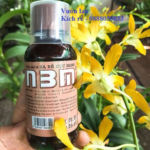 Thương hiệu phân bón lá N3M được các nhà nghiên cứu cũng như người trồng lan đánh giá cao về chất lượng sản phẩm. Là thương hiệu đã có trên thị trường từ lâu, giá thành rẻ mà lại uy tín, chất lượng nên rất được tin dùng.Phân bón N3M dạng nước chứa các thành phần N 11%, P2O5 3%, KO2 3,5%, Bo, Cu, Zn,.... chuyên k ích t hích ra rễ cho lan cứng đầu, ra rễ nhanh với cây trồng mới, lan được sang chậu, lan sau thời gian vân chuyển xa. Phân bón N3M dạng nước có thể được tưới vào rễ hoặc phun qua lá.