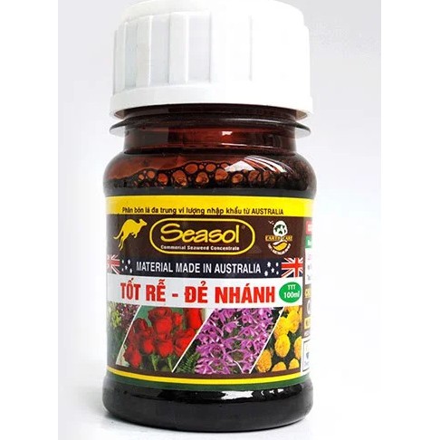 Phân Bón Kích Rễ Và Phục Hồi Rễ SeasolPhân Bón Tảo Biển Seasol được chiết xuất từ tảo bẹ nâu giàu hàm lượng hormone tự nhiên Auxin và các nguyên tố khoáng, đa-trung-vi lượng. Phân bón Seasol được dùng chính để kích thích sự phát triển của rễ non, giúp bộ rễ phát triển mạnh mẽ, rễ mập mạp, phục hồi bộ rễ bị hư tốn sau thời gian ngập úng và hạn hán. Bên cạnh đó, phân bón seasol còn có chức năng kích thích sự đẻ chồi, giúp chồi phát triển mạnh mẽ hơn.