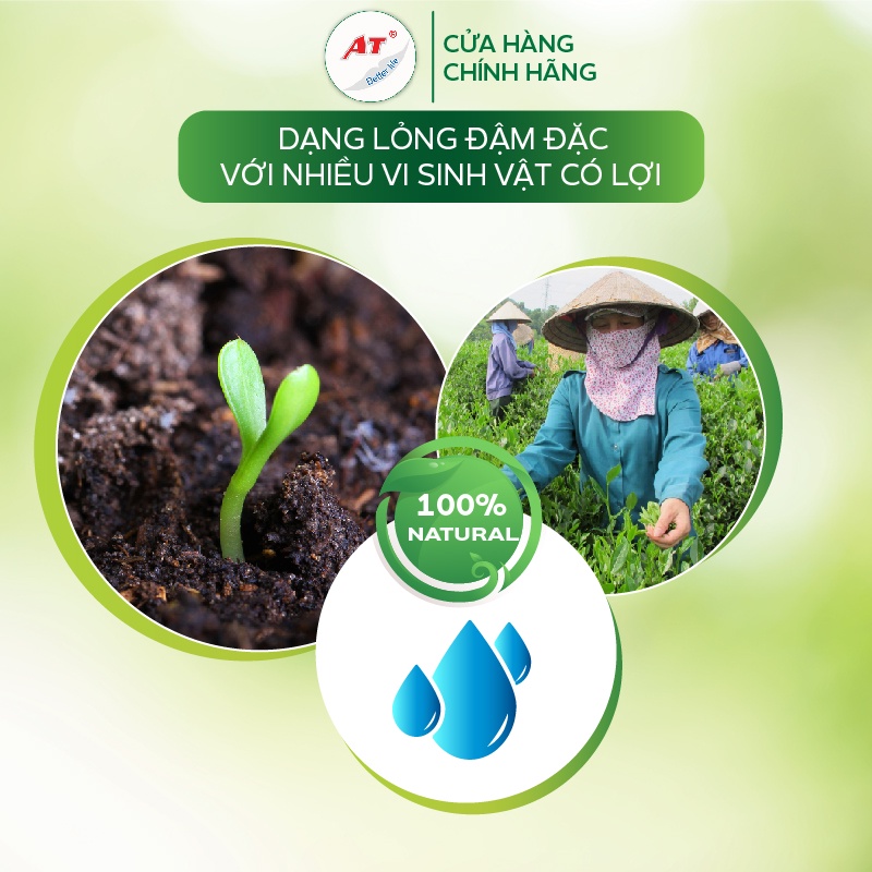 - Sản phẩm được sản xuất với công nghệ AT lên men vi sinh tiên tiến nhất tạo nhiều dinh dưỡng hữu cơ. Axit Amin thiết yếu cho cây trồng và bổ sung nhiều trung lượng: Mg, Ca, S và vi lượng cần thiết cho cây chè và đất như: Bo, Zn, Cu, Fe, Mn,...