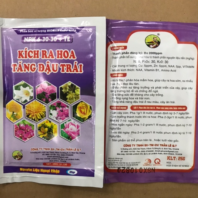 Giới thiệu Phân Bón Kích Thích Ra Hoa 6-30-30 Dùng Cho Cây Hoa, Cây Ăn Trái Dạng Gói 25G