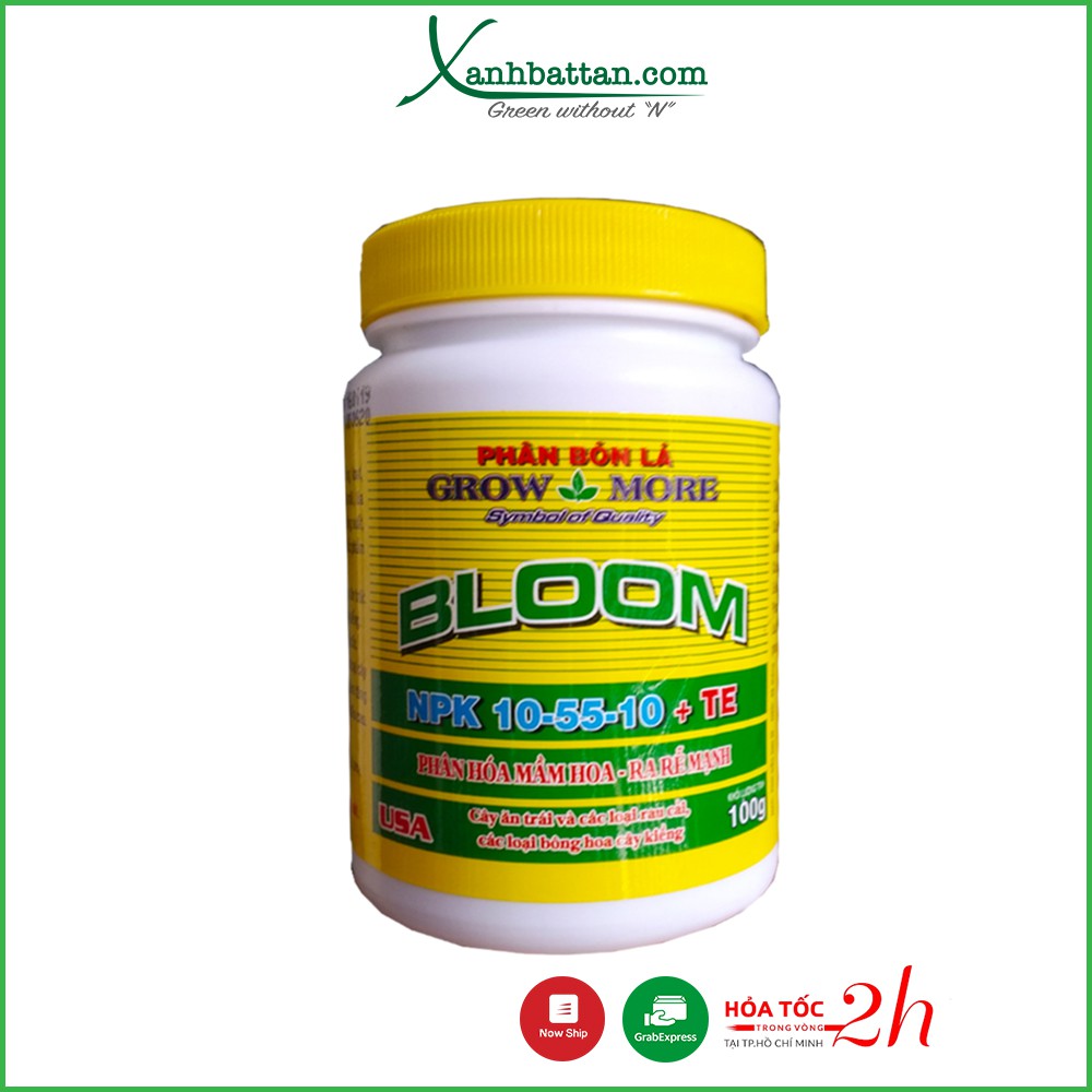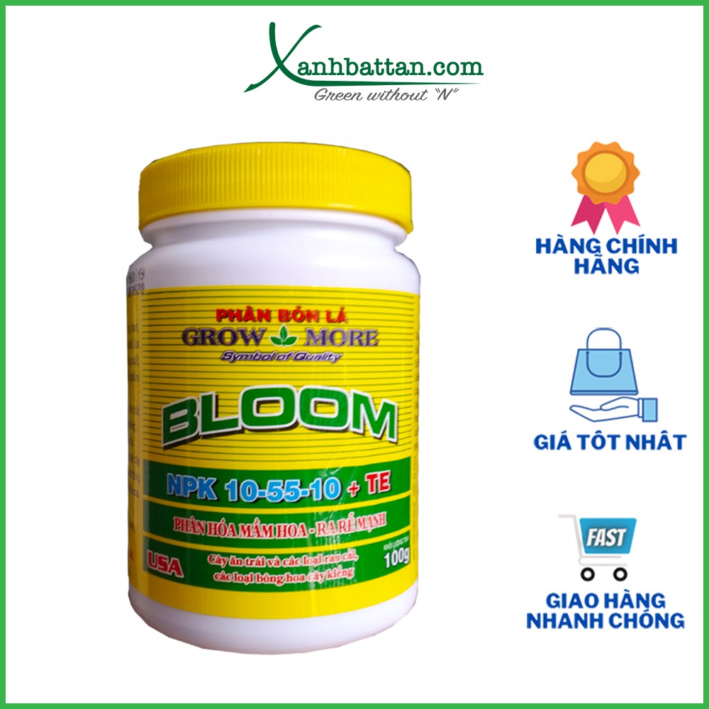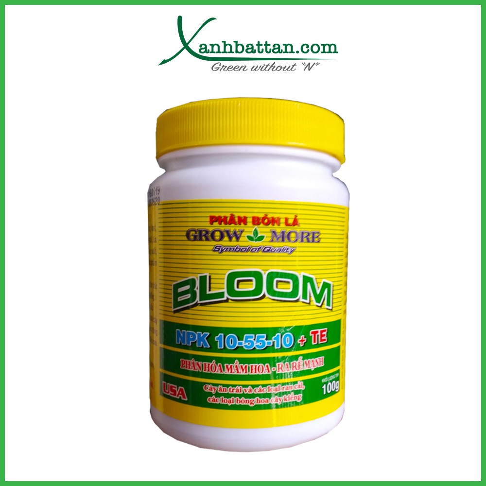Phân Bón Kích Thích Ra Hoa Cho Lan Growmore BloomPhân Bón Kích Thích Ra Hoa Cho Lan Growmore Bloom 10-55-10 là dòng sản phẩm phân bón lá của công ty GROWMORE, đây là dòng sản phẩm chứa hàm lượng N-P-K làn lượt là 10%, 55% và 10%. Với hàm lượng NPK như trên, dòng sản phẩm Phân Bón Growmore Bloom có chức năng kích thích mầm ngủ của hoa hoa, đánh bật mầm ngủ hoa, giúp hoa nhanh trổ, trổ đồng loạt và hạn chế hiện tượng rụng hoa cho cây.