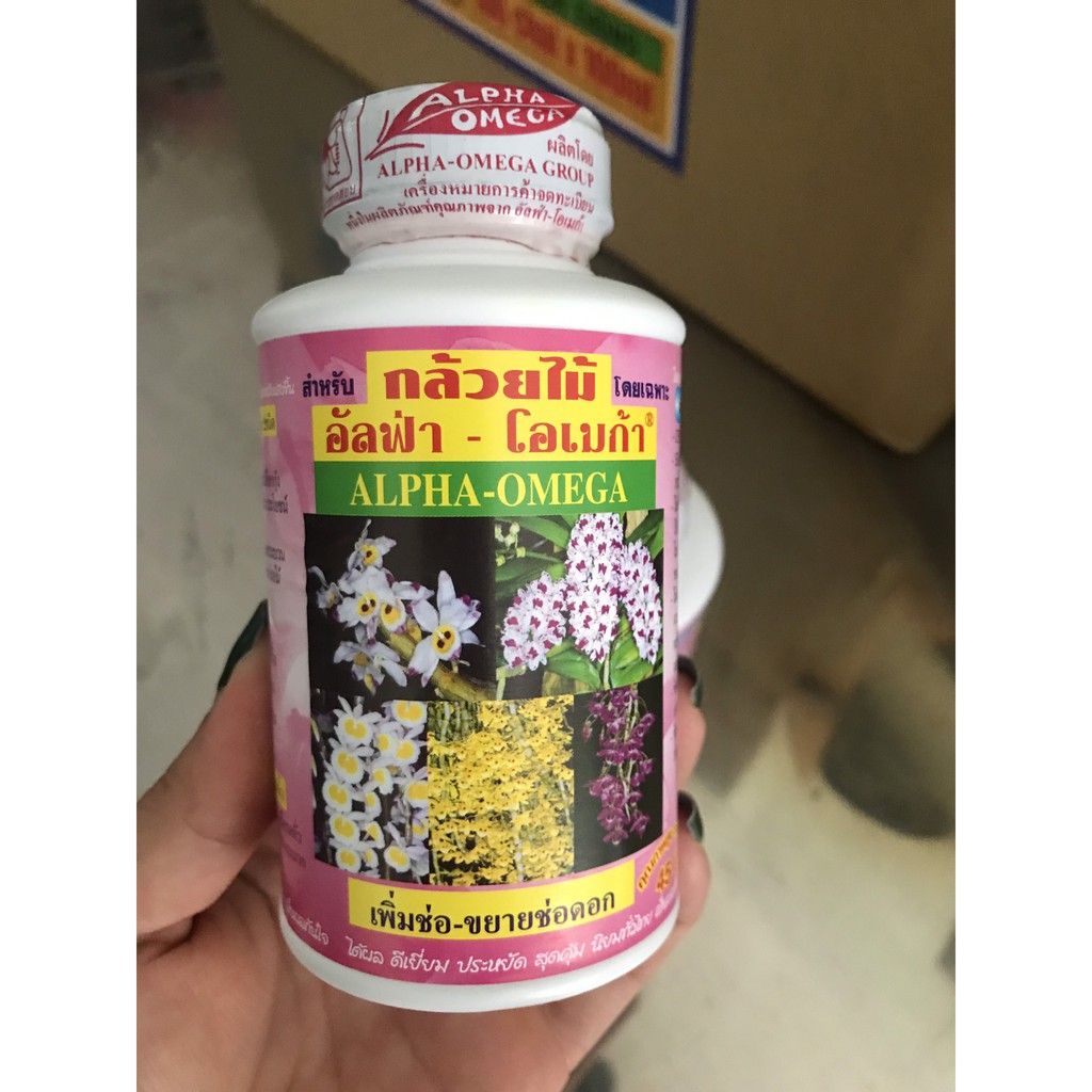 ** Phân bón kích thích ra hoa chuyên dùng cho hoa phong Lan ALPHA-OMEGA Thái Lan (250ml)- Phân bón kích hoa cho Lan Alpha Omega là dòng sản phẩm được sản xuất từ nguồn khoáng và vitamin dồi dào cung cấp dinh dưỡng cho hoa lan một cách đầy đủ. Sản phẩm được sản xuất theo công nghệ tiên tiến của Thái Lan, được dùng để kích thích hoa lan phát triển, kích thích phân hóa mầm chồi và kích thích ra hoa phong lan, kích thích tự nhiên, chứa hooc-môn thẩm thấu nhanh, không gây cháy rễ, khô rễ.
