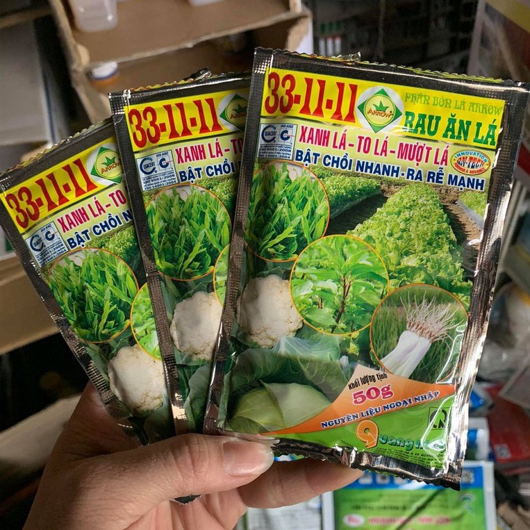 Giới thiệu Phân Bón Lá 33-11-11 ARROW ( gói 50g ) - Chuyên Bón Cho Các Loại Rau - Củ - Quả Sạch