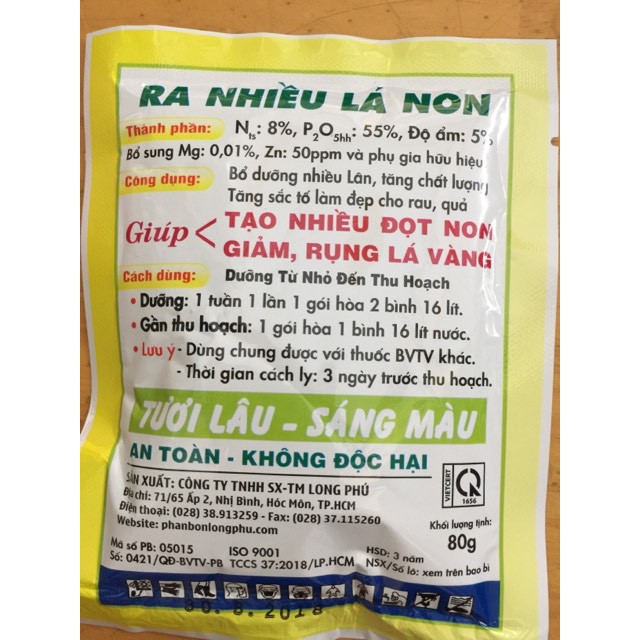 Phân bón lá 8-55+TE - Siêu Lân - Dưỡng đọt non - Gói 80grChuyên rau ăn lá