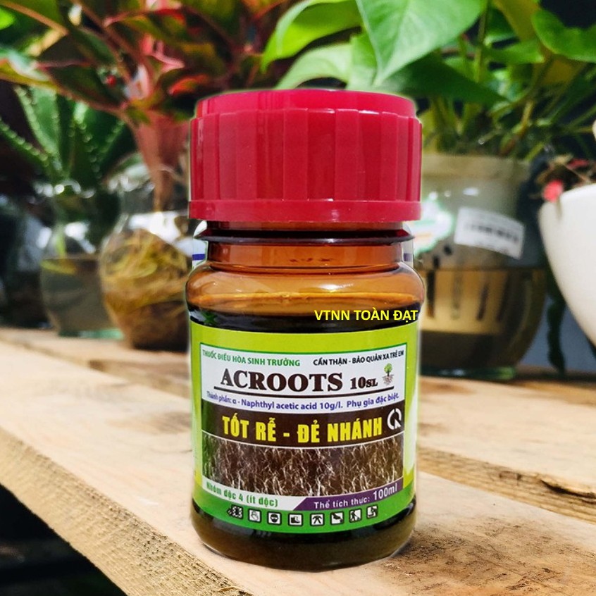 Công dụng: ACROOTS 10 SL chứa Auxin α - NAA có công kích thích ra rễ cực mạnh, đẻ nhánh nhiều, mập mầm, xanh cây, xanh lá...