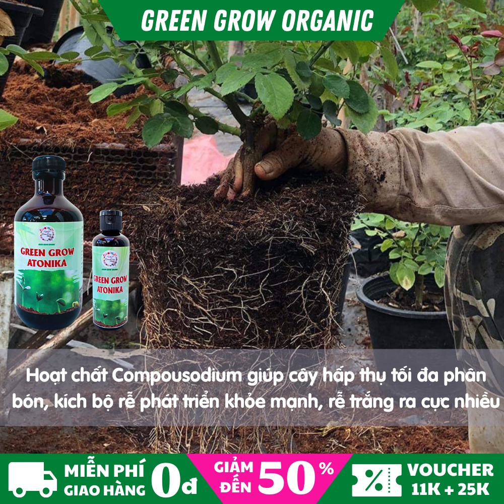 Giới thiệu Phân bón lá Atonika Green Grow Organic chai 100ml giúp kích rễ kích thích sinh trưởng kích hạt giống nảy mầm MS100