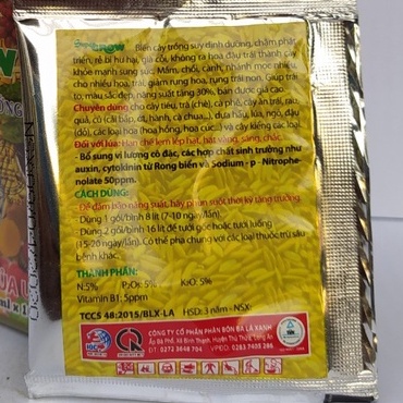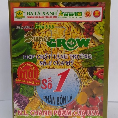 - Phân bón lá Ba Lá Xanh tăng trưởng toàn diện thế hệ mới số 1, phát triển toàn diện và năng suất. Dùng được cho phần lớn các loại cây trồng, cây công nghiệp,…
