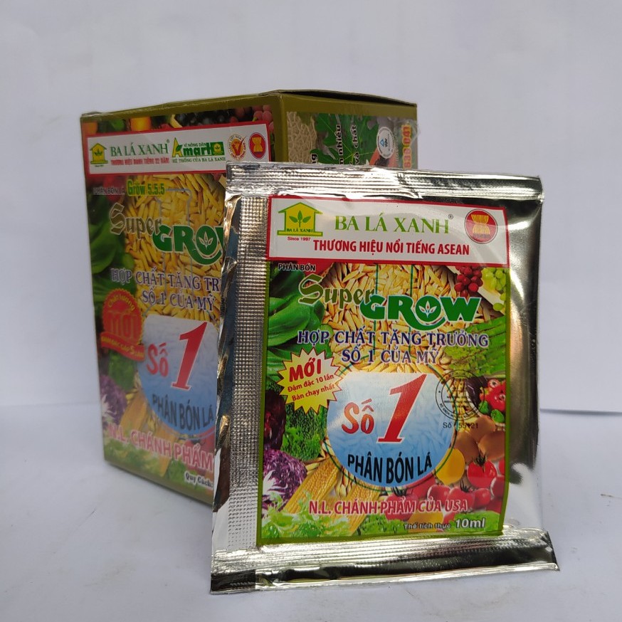 Phân Bón Lá Ba Lá Xanh Đậm Đặc Số 1 (10ml)- Phân bón lá, hợp chất tăng trưởng số một từ Hoa Kì, thể tích 10ml.