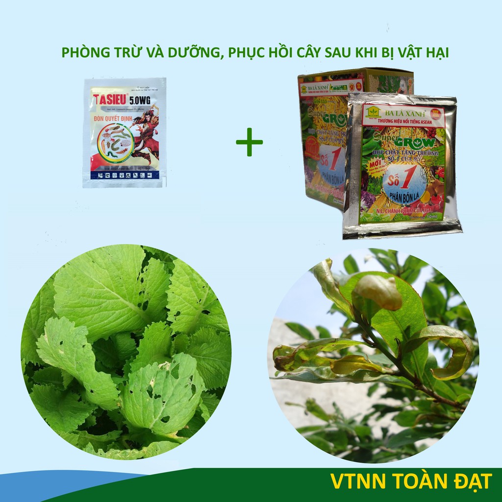 Bộ phân bón lá Ba Lá Xanh số 1 và Tasieu, giúp bảo vệ và dưỡng cây trồng tối ưu