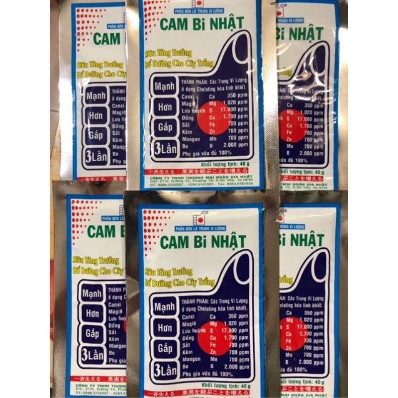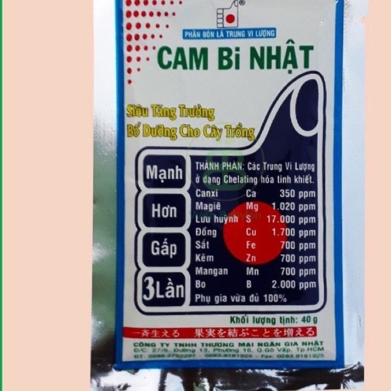 Phân bón lá bổ sung trung vi lượng Cam bi nhật siêu tăng trưởng bổ dưỡngcho cây trồng gói 40gThành phần: