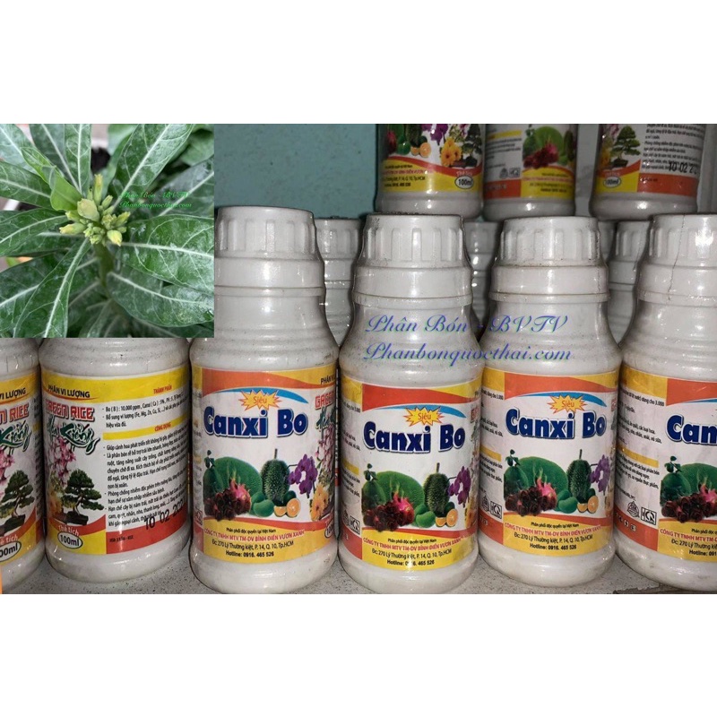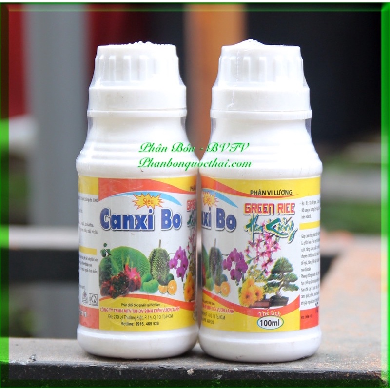 Phân Bón Lá Canxi Bo Giúp Giữ Bộ Nụ, Hạn Chế Rụng Nụ, Lớn Trái Nhanh, Chống Nứt TráiPhân vi lượng CANXI BO 100ml là phân bón rễ và lá hỗ trợ trái lớn nhanh, bóng đẹp, màu sắc tươi cứng chắc, ruột đặc, tăng năng suất, bảo quản được lâu