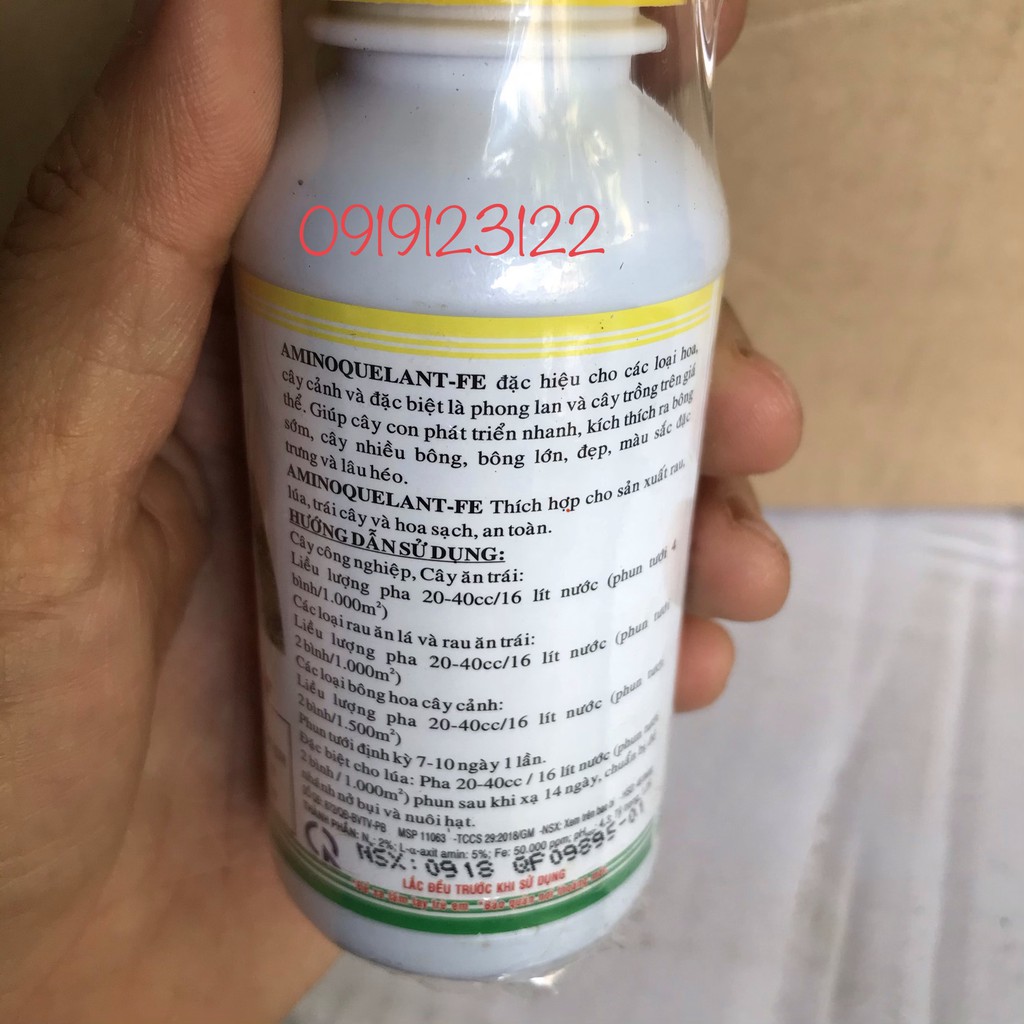AminoQuelant-Fe đặc hiệu cho các loại hoa,cây cảnh và đặc biệt là phong lan,cây trồng trên giá thể.Giúp cây con phát triển nhanh,kích thích ra bông sớm,cây nhiều bông,bông lớn,đẹp,màu sắc đặc trưng và lâu héo.