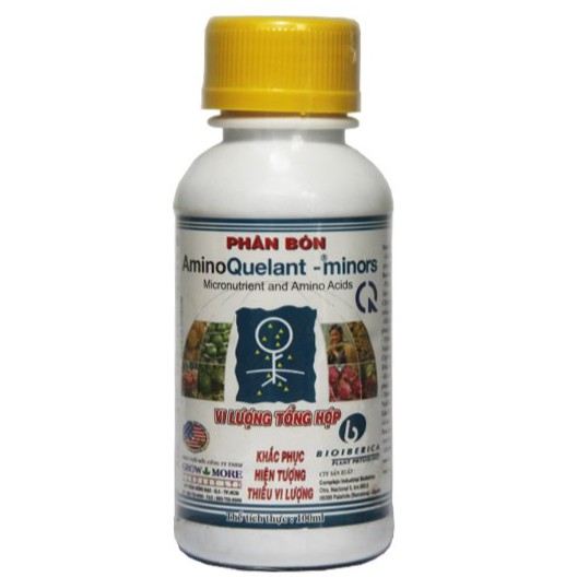 AminoQuelant-Minors hỗn hợp các nguyên tố vi lượng EDTA quý hiếm,được cô đặc với dạng phức L-a Amino Acid,khắc phục hoàn toàn các bệnh do thiếu vi lượng trên cây trồng.