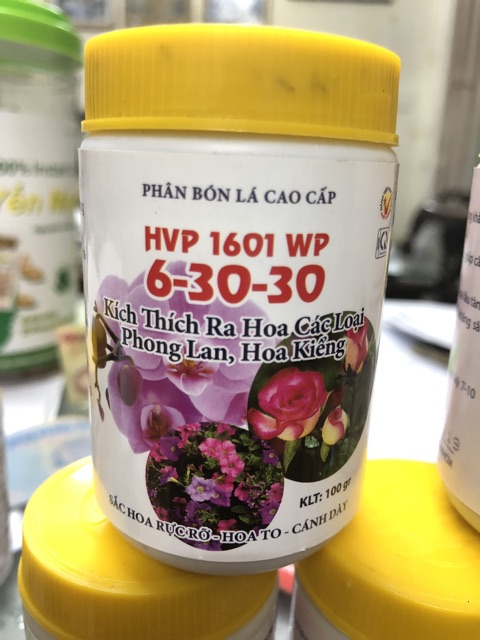 Phân bón lá cao cấp HVP 6-30-30 kích thích ra hoa dùng cho hoa lan, cây cảnhPhân bón lá cao cấp HPV 6-30-30 Kích thích ra hoa lọ 100g dùng cho phong lan và các loại cây cảnh.