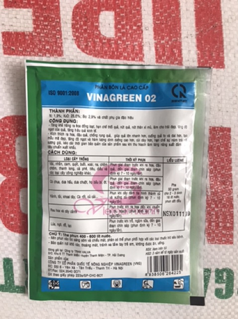 - Thành phần : N 1.9% ; kali 25.6% ; Bo 2.9% và phụ gia đặc hiệu- Khối lượng tịnh ; 50g/ 1 gói