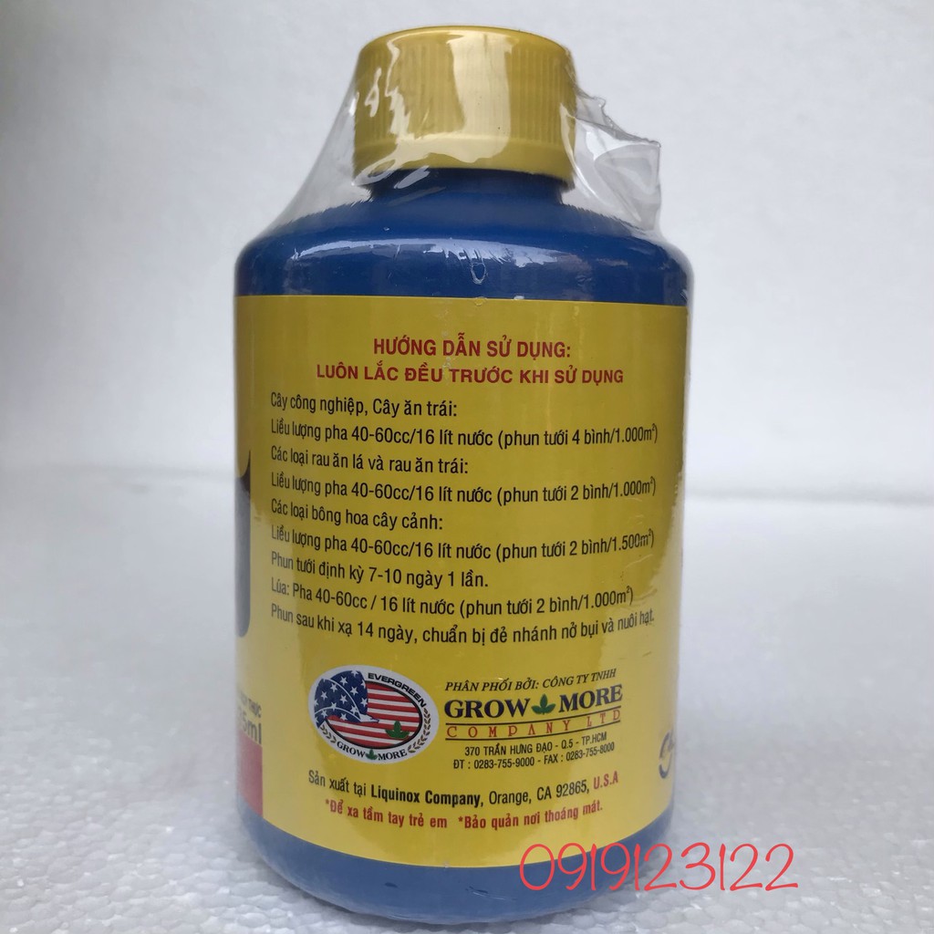 Pha 40 - 60 ml cho 1 bình xịt 16 lít nước. Phun đều lên trên và dưới mặt lá, phun vào rễ và các giá thể. Phun định kí 5-7 ngày/1lần. Riêng đối với các loại hoa kiểng, pha 40 - 60 ml cho bình xịt 16 lít nước. Phun định kì 15 ngày/1 lần.