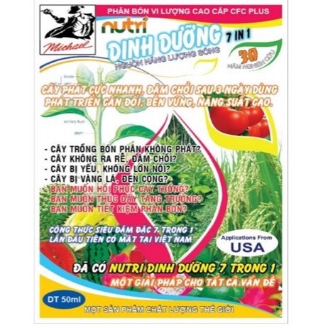 Phân bón lá cho hoa, cây cảnh_Nutri Dinh Dưỡng 7in1 ra rễ mập chồi_Chính hãng CTY SAM GROUPThể tích 50ml.