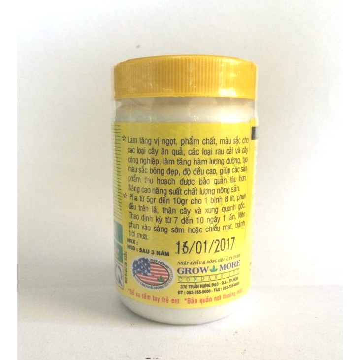– Làm tăng vị ngọt, phẩm chất, màu sắc cho các loại cây ăn quả, các loại rau cải và cây công nghiệp. làm tăng hàm lượng đường, tạo màu sắc bông đẹp, độ đều cao, giúp các sản phẩm thu hoạch được bảo quản lâu hơn. Nâng cao năng năng suất chất lượng nông sản.