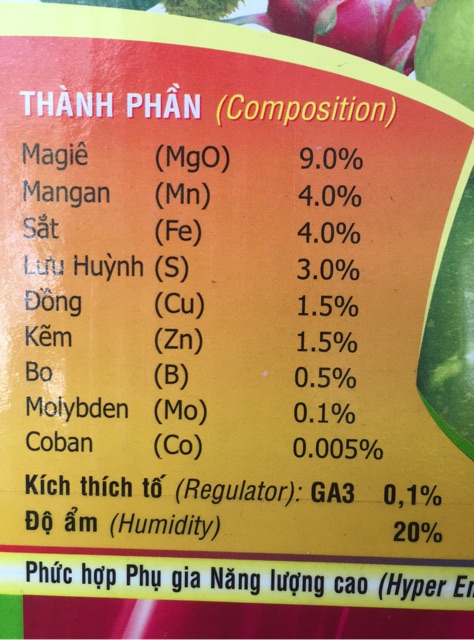 👉Thành phần: các nguyên tố vi lượng cần thiết trong các giai đoạn phát triển của cây. Kích thích tố GA3, giúp cây phát triển nhanh chóng. (Xem trên ảnh)👉Công dụng: