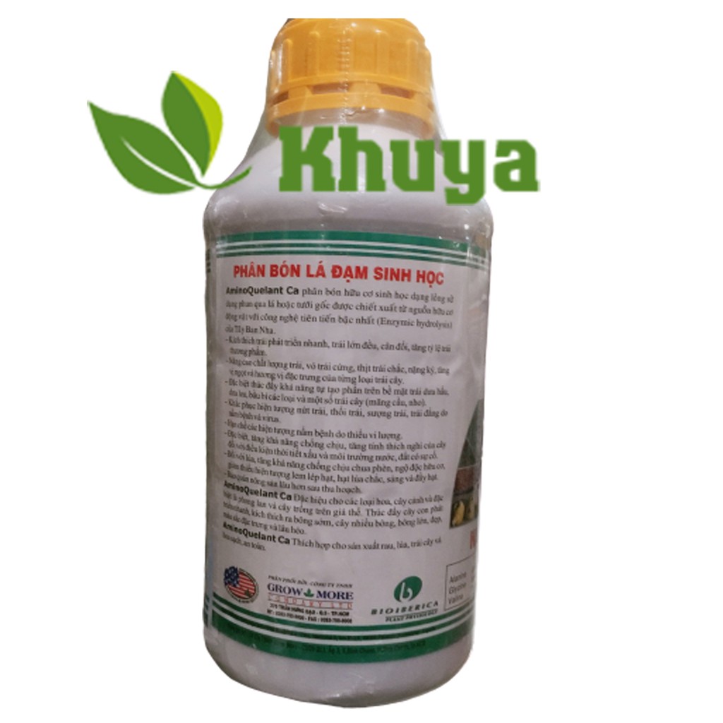 Giới thiệu Phân bón lá đạm sinh học Growmore AminoQuelant Ca 1 lít Chống thối và Nứt trái