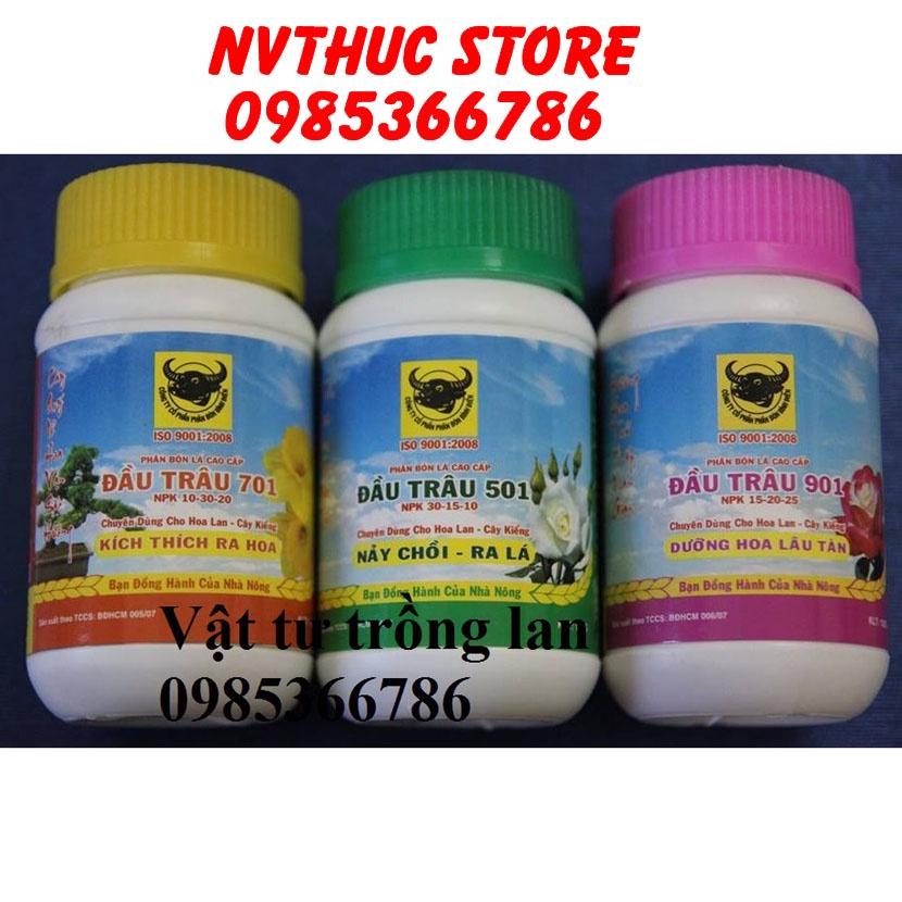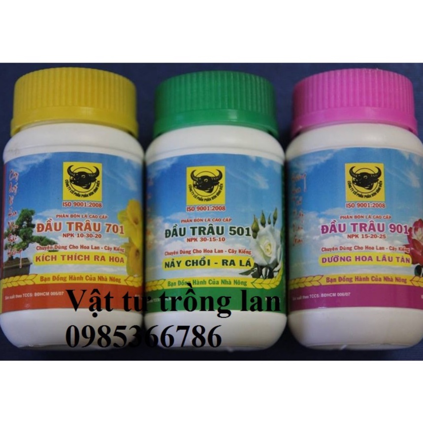 Nhà cửa & Đời sống > Làm vườn > Phân bón || Bộ phân bón lá đầu trâu chăm sóc lan gồm 1 lọ 501 + 1 lọ 701 + 1 lọ 901Còn hàng