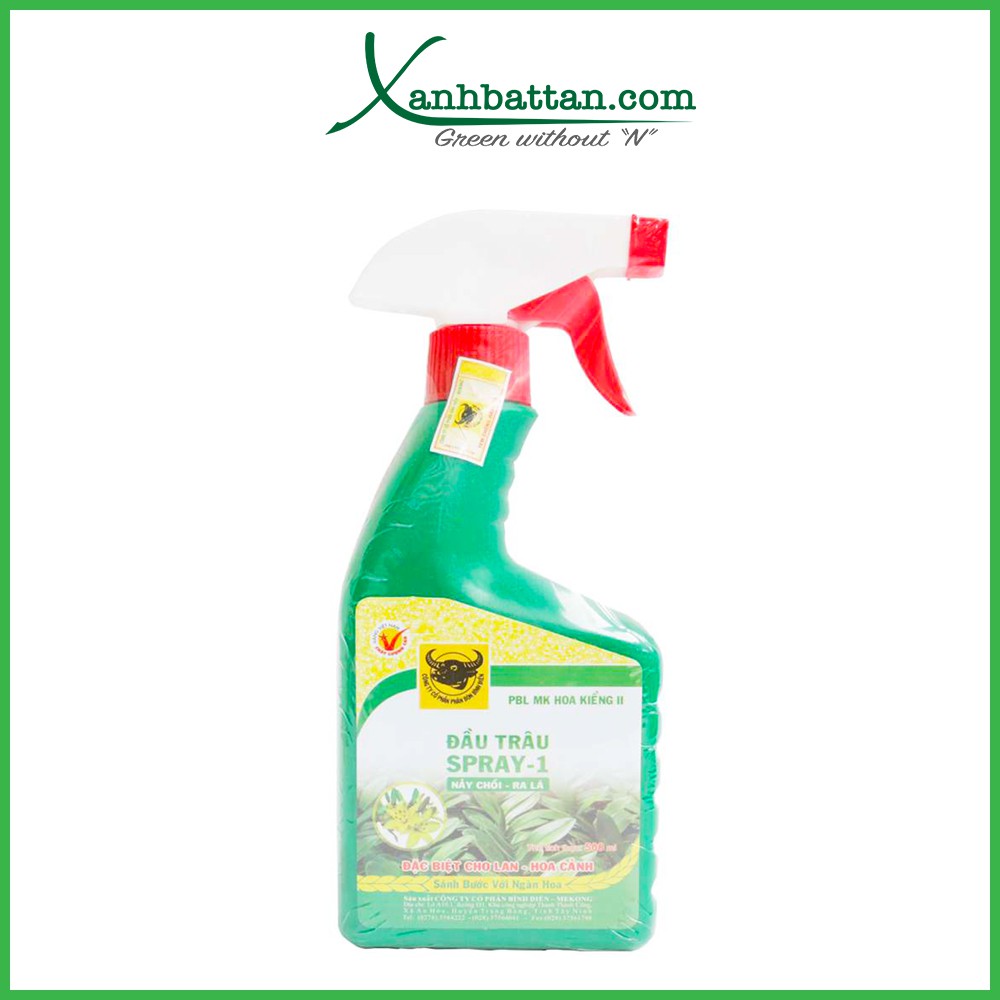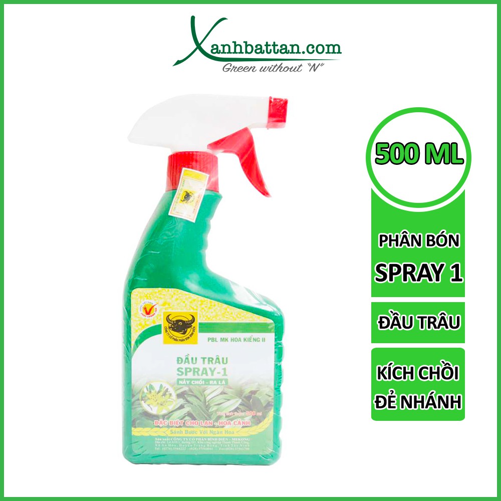 Phân Bón Đầu Trâu Kích Chồi Spray 1Phân Bón Đầu Trâu Kích Chồi Spray 1 là dòng sản phẩm phân bón lá của công ty phân bón Bình Điền. Sản phẩm SPRAY 1 được sản xuất từ nguồn khoáng trung vi lượng, hàm lượng chất dinh dưỡng cân đối và chứa nhiều hormone kích thích sinh trưởng của thực vật bao gồm: alpha-NOA, GA3 và nhiều chất khác giúp kích thích sự phát triển của chồi, lá, giúp cây sinh trưởng khỏe mạnh và nhanh thành thục. Bên cạnh đó, Phân Bón Đầu Trâu Kích Chồi Spray 1 còn tăng khả năng chống chịu của cây với điều kiện của môi trưởng bất lợi và giảm sự ảnh hưởng của sâu bệnh hại.